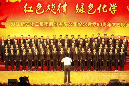 瀏覽量:6957 “錦繡江南有一條新安江,美麗的新安江啰!新安江畔有一座化工城,綠色的化工城……”6月29日晚上,公司領(lǐng)導(dǎo)王偉、季誠(chéng)建、潘秋友、劉俠、林加善、任不凡、姜永平、包雪傳等帶領(lǐng)公司機(jī)關(guān)員工組成的合唱團(tuán),高聲歌唱《新安化工之歌》,拉開了公司慶祝中國(guó)共產(chǎn)黨建黨90周年“紅色旋律 綠色化學(xué)”紅歌主題晚會(huì)的序幕。在晚會(huì)現(xiàn)場(chǎng)還舉辦了公司為紀(jì)念“雙童”烈士組織黨員繳納特殊黨費(fèi)的捐贈(zèng)儀式。