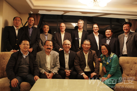 道格.約翰斯先生(后左二)、比爾.卡特先生(后右四)、 約翰.當(dāng)?shù)婪蛳壬ê笞笏模?、方江南副總?jīng)理(后右二)